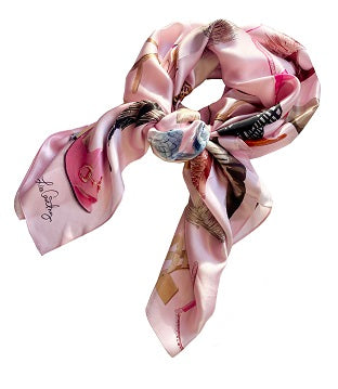Lisa Courtney’s silk scarves aren’t just accessories; they’re acts of rebellion against the ordinary, badges of courage for those who dare to be different. Each scarf challenges conventions, combining colors, patterns,and illustrations in ways that defy expectations. By choosing one, you’re not just buying a scarf; you’re embracing your individuality, declaring your taste for the extraordinary.